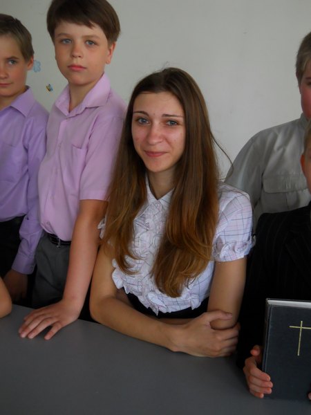Богдана Мельник, школьница: я посещаю церковь с самого рождения. Хожу сюда с мамой Юлией Константиновной. Конечно, без всякого принуждения. С удовольствием слушаю, о чем рассказывают. Все мне интересно и во все верю. Церковь дала мне любовь к людям, честность и терпение. В школе близкие подружки о моем увлечении знают. Переубедить не пытаются. Я член церковного клуба «Следопытов».