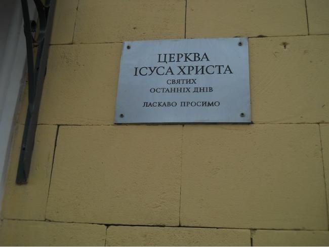 Проходя мимо здания городского отдела милиции – Шевченко, 13 совершенно случайно, на соседнем здании (Шевченко, 15) увидел интересную табличку: Церковь Иисуса Христа святых последних дней. Добро пожаловать.