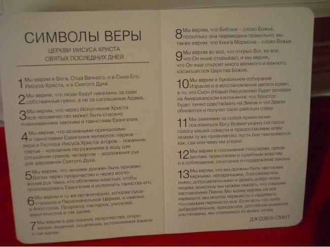 У Церкви 28 доктрин. Основные – вера в Троицу и в Иисуса Христа – сына Божьего.