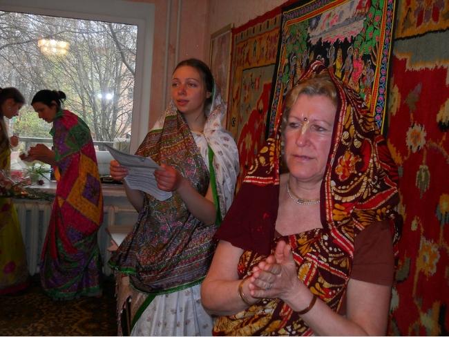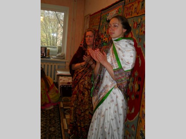 Марина Кучерова, художник, г. Киев: я в Чернигове в командировке. В обществе чуть больше года. Мой процесс осознания этой философии был постепенным. Сначала прочитала курс лекций в интернете, потом в руки попал диск на эту тему, и после этого посетила храм Кришны в Киеве. Родители мой выбор одобряют. Я бросила курить, стала более серьезной и начала вести здоровый образ жизни.