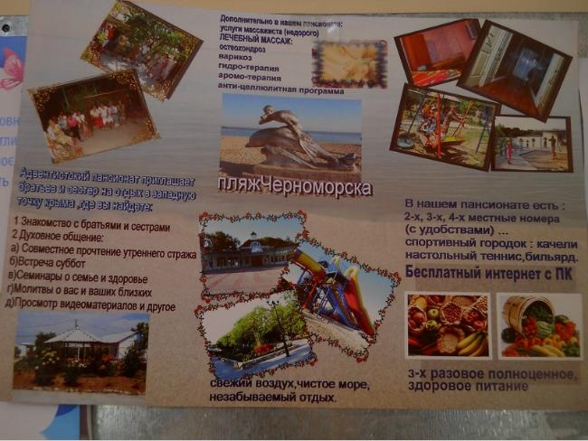 Кроме баз отдыха Церковь Адвентистов славится своими лечебно-профилактическими учреждениями, типа санаториев.