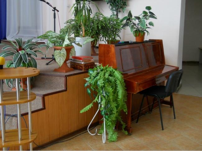 Пастор «работает» на, практически, настоящей, сцене. Возле нее находится фортепиано и все проповеди сопровождаются «живой» музыкой.