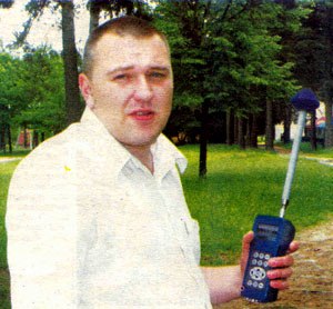 Возле котельной, под самой станцией Михаил Викторович включает прибор. На дисплее нули. Норма излучения — 2,5 микроватта. Может, не включено?