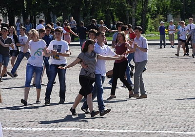 Вальсировать во время открытия фестиваля, 25 мая в 17.30, будут более 400 пар одновременно – на площадь выйдут представители всех танцевальных коллективов города! Участие горожан активно приветствуется – присоединившись к танцорам, вы поможете городу поставить рекорд. Если есть возможность, лучше предварительно прийти на репетицию: 18 мая, с 15.00 до 17.00. Приходите в удобной обуви, на площади – неровная брусчатка!