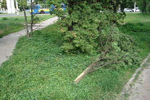 До наших журналістів надійшла інформація стосовно акту екологічного вандалізму, який стався в ніч з 22 на 23 червня в самому центрі міста - на розі вулиці Войкова і проспекту Миру (навпроти колишньої колони Дружби народів - де розвертається тролейбуси маршруту №9).