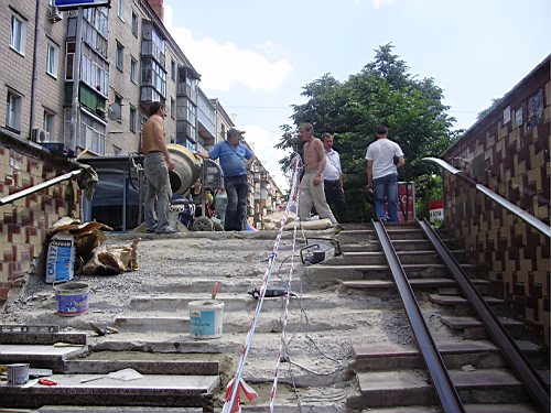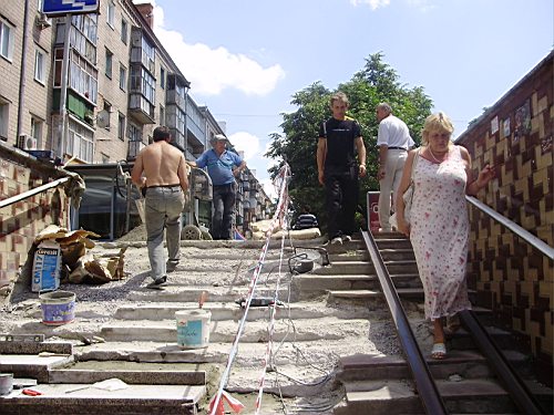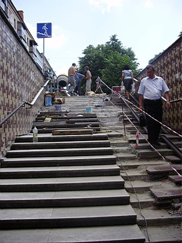 Черниговские подземные переходы уже давно находятся в неудовлетворительном состоянии. Разбитые ступени, отсутствие перил, неудобные «рельсы» для колясок – все это вызывает раздражение у наших жителей и недоумение у гостей города. Мэрия уже давно грозилась черниговцам привести в порядок переходы в центре. И вот она первая ласточка. В понедельник начат ремонт подземки, что на перекрестке ул.Киевской и пр-та Мира (возле кафе Мамма-Мия). Строительная фирма-подрядчик ООО «Гранит».