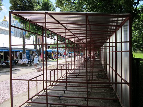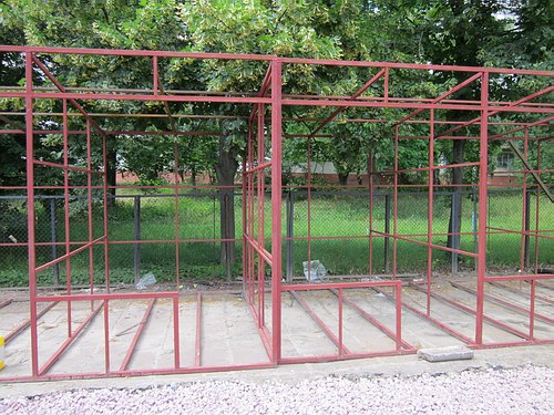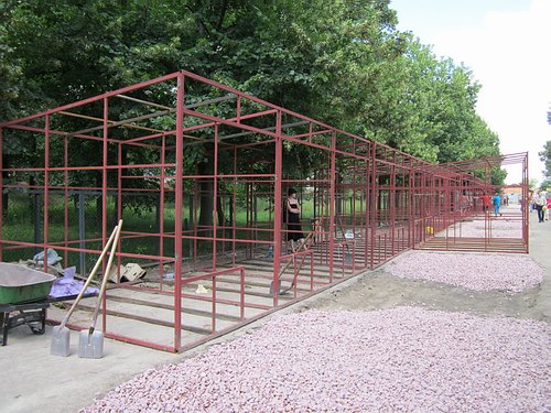 27 мая была прекращена работа торговых рядов на этом месте и начали устанавливать металлические каркасы. По словам Николая Степановича всего тут оборудуется 61 торговое место. 52 места по 6 квадратных метров и 9 мест по 7,5 метров.