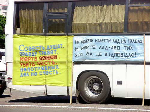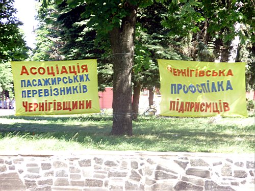 Утром 25 июня часть Красной площади Чернигова была перекрыта сотрудниками милиции. На площади выстроилось до полусотни автобусов, как говорится, больших и разных. Хозяева автобусов переместились под стены Черниговской областной государственной администрации, под стенами которой начался митинг перевозчиков области под громким названием «похорон Конституції на Чернігівщині».