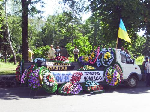 Логика организаторов акции, а ими были Черниговский профсоюз предпринимателей и ЧООО «Ассоциация пассажирских перевозчиков Черниговщины», была простая. На Черниговщине идет попрание одного из положений Конституции – права на труд перевозчиков. Гарантом Конституции является Президент, а его представителем в области – глава ОГА. Так вот и извольте – гроб с надписью «Конституция Украины» с десятком венков – прямо под стены администрации.