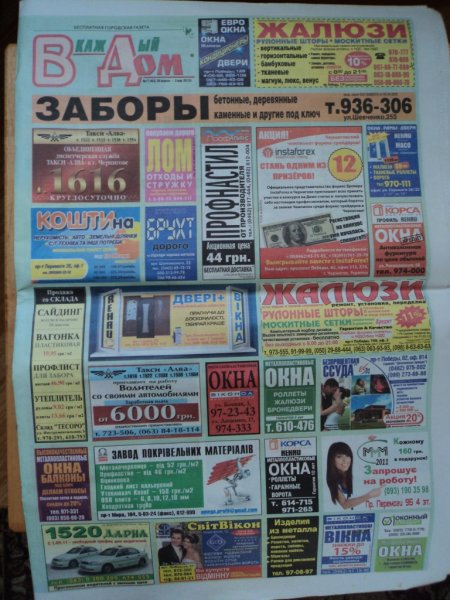 Существует индивидуальный подход к каждому рекламодателю и, соответственно, персональная система скидок. Постоянно проводятся различные акции, например, для новых рекламодателей существует акционная цена за рекламный блок – 50 грн.