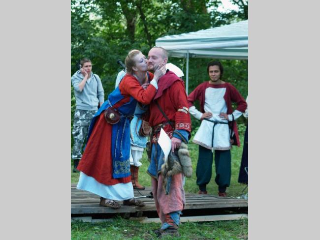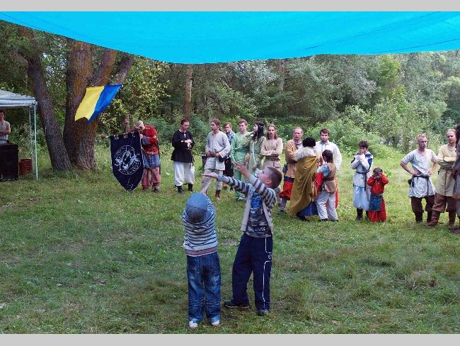 Традиционный, уже 12-й по счету Международный фестиваль славяно-варяжской культуры и исторического фехтования был торжественно открыт утром 20 июля. Несмотря на моросящий дождь, настроение участников фестиваля было бодрое. Большинство из них заехало на территорию проведения фестиваля еще в четверг. Те, кто не успел перезнакомиться, после проведенной у костра ночи, стали друзьями. А вообще-то большинство участников – знают друг друга очень давно…