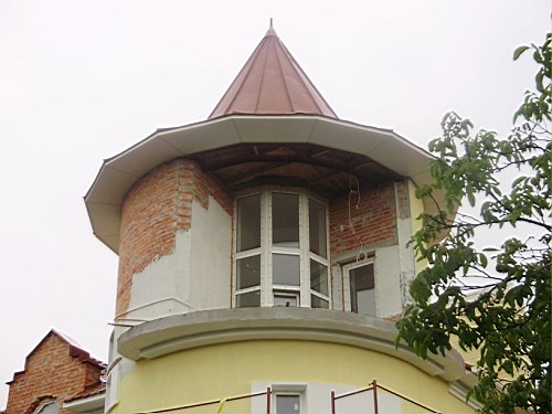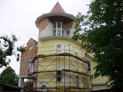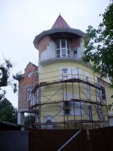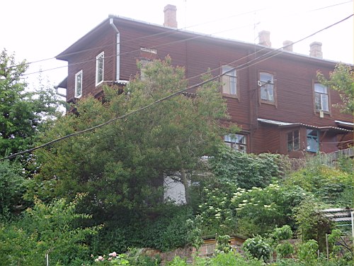 Рядом с двухэтажным котеджем притаилась настоящая избушка на курьих ножках