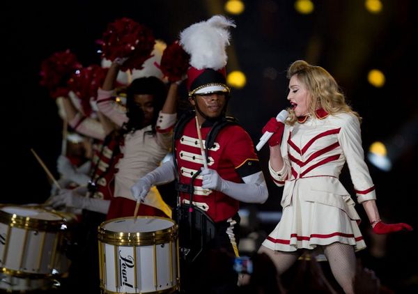 На протяжение первых песен шло видео с изображением крестов, шаманов, каких-то вуду-церемоний, кладбищенских сюжетов, различные кровавые кадры, что вызвало у нас немного жуткие ощущения, особенно видеоряд на песню "Gang Bang" со сплошными брызгами крови и мельканием кровавых картинок на экране. Но с выходом Мадонны в костюме тамбурмажора все преобразилось в праздник.