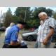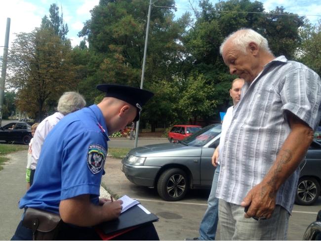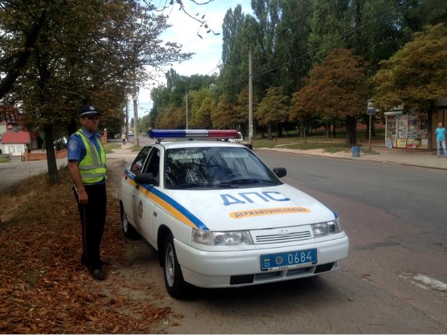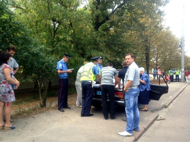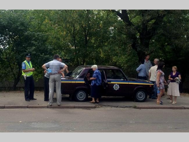 Водій після ДТП в шоковому стані знаходилась в автомобілі співробітників міліції, де її заспокоювала літня жінка.