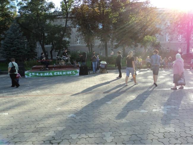 В последний день лета, в 18.00, на «Зеленой Сцене» состоялся концерт еще одного интересного музыкального коллектива из Харькова – Marble boy. Также все желающие в этот день могли посетить фотовыставку киевского фотографа Дмитрия Труша, выставку живописи Натальи Гречухиной (Киев), приобрести авторские сувениры ручной работы, ну и просто хорошо провести время в приятной тусовке!