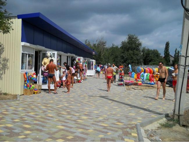 Много кабин для переодевания, через каждые 10 метров скамейки, несколько кафешек – пиво, виноградное вино, сушеная рыба.