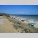 От первой линии девятиэтажек до городского пляжа метров 150. Пляж протянулся километра на полтора, достаточно ухоженный и просторный. Даже в час пик есть возможность кинуть подстилку там, где хочется.