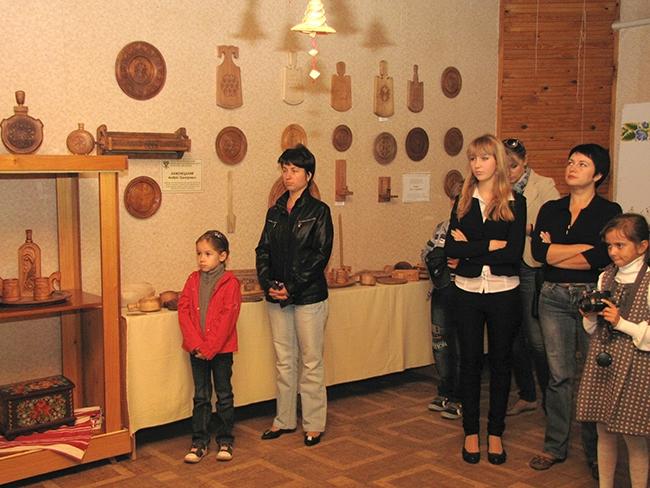 Завітавши до Центру відвідувачі переглянули виставку декоративно-прикладного мистецтва. Серед експонатів – вироби з лози, дерева, кераміки та інші.