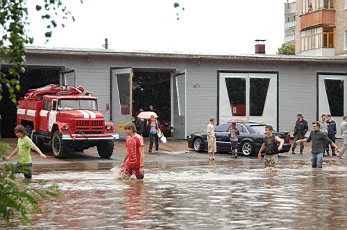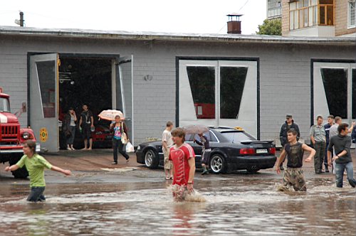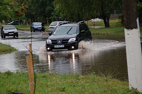 Сегодня, 10 июля ситуация возникшая в одном из центральных районов Чернигова, а именно пересечение улиц Одинцова и Рокоссовского, напоминала кадры из фильма «Потоп». Проезжая часть из-за ливня, который обрушился на город превратилась в озеро. По которому с большим трудом перемещался общественный транспорт и автомобили. Единственные, кто радовался происшествию - были дети, многие из них видели подобное зрелище впервые.