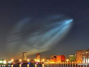 Выглянула в окно. Увидела на небе светящийся цилиндрический объект. Он медленно двигался со стороны Десны -к новой многоэтажке рядом с Молодежным театром. (Пролетал и над нашей редакцией:))