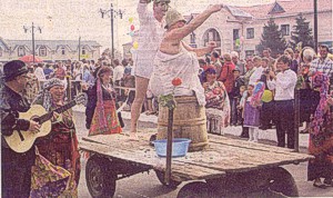 Баня и цыгане были из Мрина. Вот где заряд положительных эмоций! Сценарий разработала Елена Мариненко, заведующая Мринским домом культуры. Она же активно воплощала его в жизнь — села в деревянную бочку, а Владимир Бобок изображал банщика — опускал березовый веник в тазик с водой, и по плечам, по плечам Елену Александровну. Народный аматорский певческий коллектив Мринского дома культуры «Молодички» переоделся цыганами. Они вели на поводке медведя — Галину Слабкову в шубе, рукавицах и темных очках. Доброго смеха и восхищенных аплодисментов носовцы не жалели.
