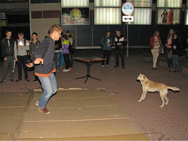 Зрители с интересом наблюдали за выступлением ребят и поддерживали их аплодисментами. Танцоры беспрерывно сменяя друг друга не давали им скучать. Зажигательные танцы вызвали интерес даже у бездомного местного пса, который попытался повторить сложные элементы танца.