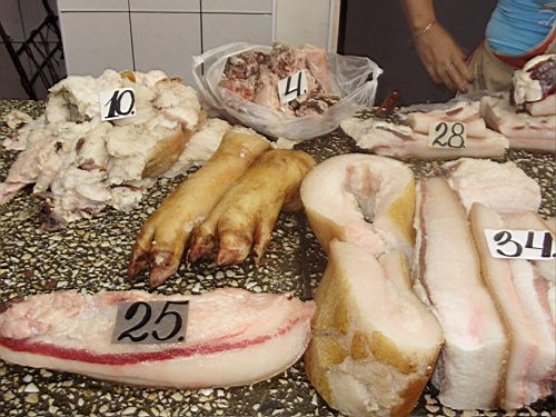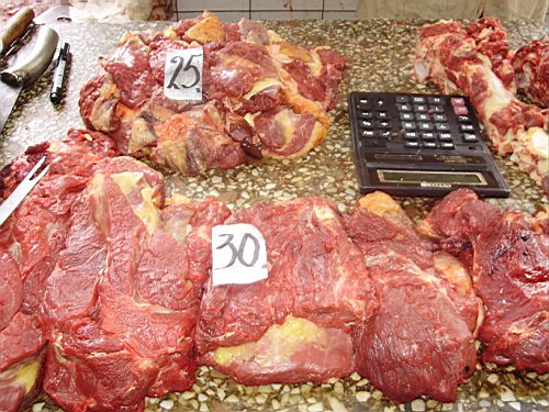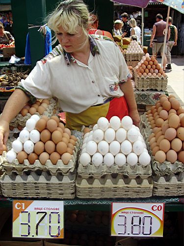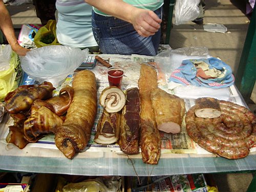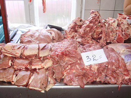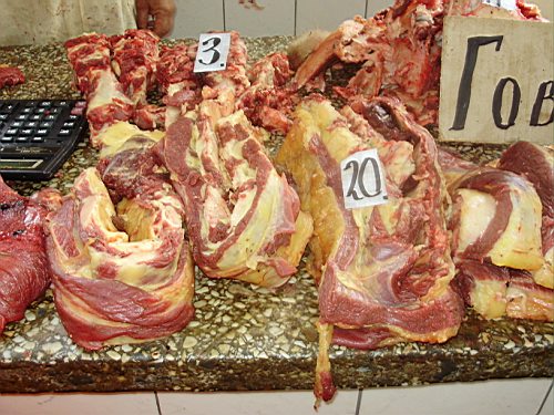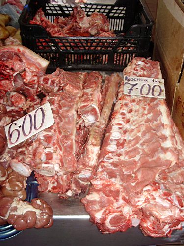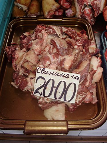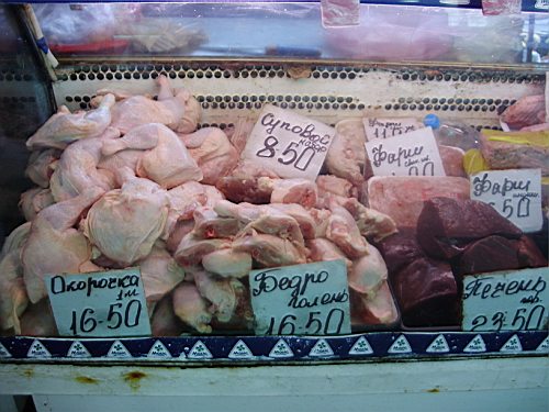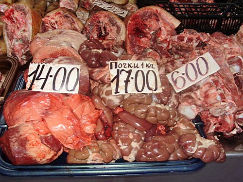 На центральном рынке Чернигова цены на мясо все так же высоки. Сегодня за килограмм свиной или говяжьей вырезки торговцы просят от 30 до 35 гривен. Так что любителям посидеть на природе с шашлычком придется раскошелиться. Кило отборного сала с прорезью стоит почти столько же, но охотно уступают, если берете 2-3 килограмма. Не отстает и стоимость колбас и других мясных изделий. Цены на сметану и творог по- прежнему стабильны – так килограмм творога в павильоне на Центральном стоит 9-13 гривен, сметана по 5-8 гривен. Яйца – 3,20-4,80. Предлагаем вашему вниманию фоторепортаж и более подробный срез цен на мясо и молочные продукты.