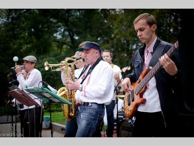 И в итоге масса веселых (а мы призывали в анонсах одеваться поярче) и ярких людей в сопровождении оркестра военно-музыкального центра Сухопутных войск (который целый месяц готовился к этому действу!) прошли по центру города, от «Мегацентра» к «Зеленой сцене» – а там уже состоялся концерт под открытым небом. Кстати, большое спасибо музыкантам, что они пошли на эту авантюру! Мы-то даже немножко побаивались: ну как это, военный оркестр, серьезные люди – и мы со своим джазом… Но руководитель центра Александр Шевчук очень хорошо воспринял нашу идею – и мне кажется, вышло действительно интересно.