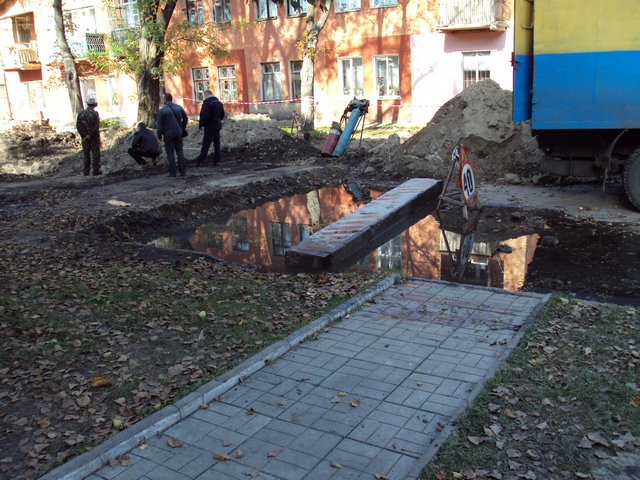 Никаких мер, как оказалось, сотрудниками ГАИ предпринято не было. Автомобили как ездили через двор, так и продолжают ездить. Пообщавшись с рабочими, мы узнали, что прорвавшая труба уже починена и осталось лишь засыпать ямы. Что до конца недели работы будут закончены. По поводу запрещающих движение знаков рабочие в один голос так же, как и их начальник, ответили, что знаки были да «сплыли».