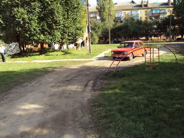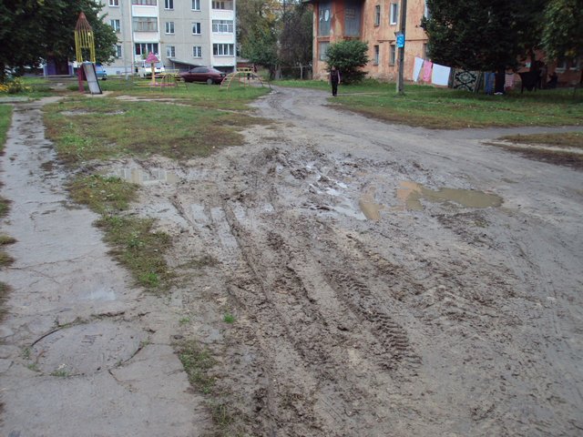 Мы решили подождать до следующего дня, чтобы узнать предпримет ли ГАИ какие-то меры. На следующий день, в четверг, во второй половине дня, мы приехали на улицу Текстильщиков 23. Ночью прошел дождь, и двор стал еще "краше".
