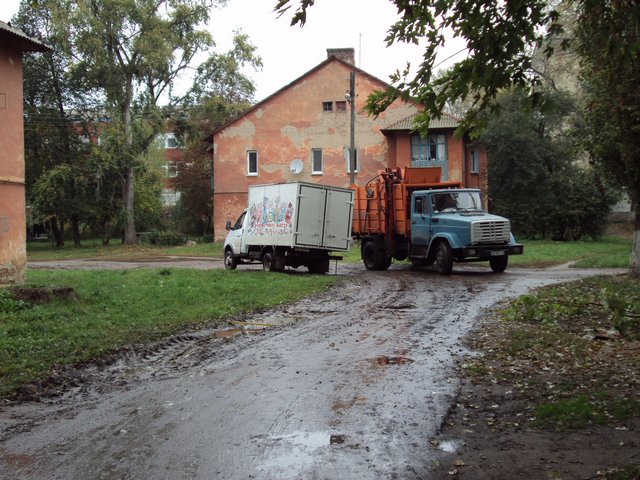 Так же в объектив нашей фотокамеры попал мусоровоз, успешно курсирующий по двору.