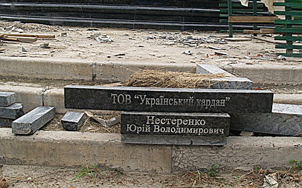 Зато, можно отметить, что начался подвоз «именных» плит. Белый текст на черном граните…
