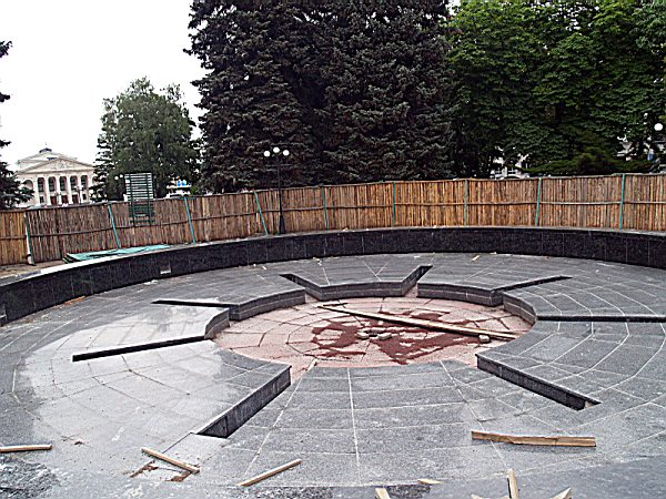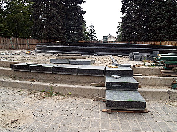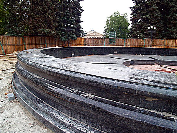 Почему-то вспомнились старые советские времена: вместо кирпича на стройку завезли доски, а вместо цемента – воду. Здесь же вопрос «уперся» в гранитные плиты, которые должны уложить вокруг чаши фонтана. Их завезли только 10 штук. На сегодняшний день чаша фонтана практически закончена – осталось проложить трубы. Правда, как-то пустовато сморится без статуи по центру…