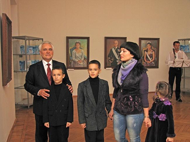 Благотворительный визит шведской принцессы Мадлен в Чернигов в 2006 году послужил толчком к идее создания портретов шведской королевской семьи. Их выполнил по моему заказу замечательный черниговский художник Леонид Жихарев. Эта семья хорошо известна в мире своей благотворительностью и целями, направленными на развитие демократии. Портреты выполнены в технике «пастель» на ватмане размером «золотого сечения» 100 х 67 см.