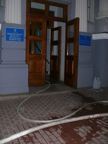 Невдовзі до міської ради Чернігова прибуло більше п'яти пожежних машин, у тому числі й спецмашина із драбиною, яку опустили на дах будівлі. Досить швидко пожежу було локалізовано. Постраждалих немає.