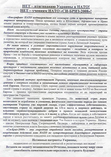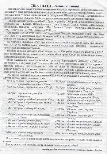 листовки с текстом о недостатках НАТО и США. Подписаны листовки были Черниговской областной организацией Антифашистского Комитета Украины.
