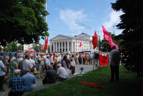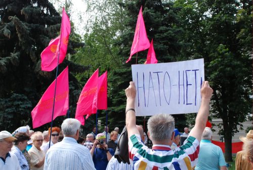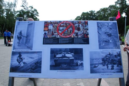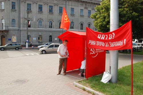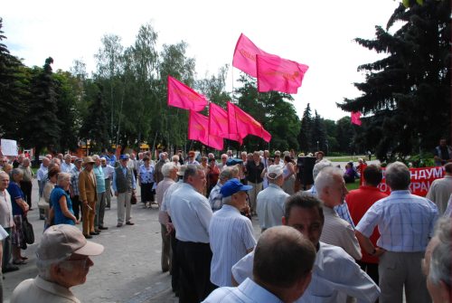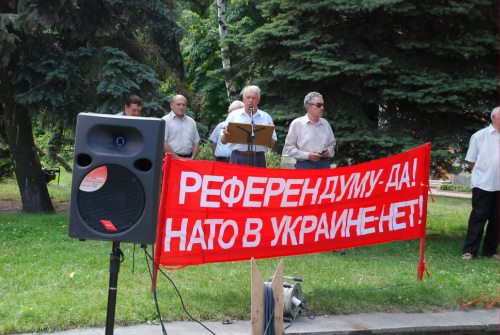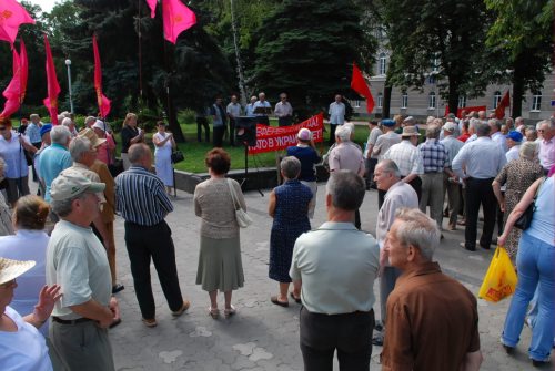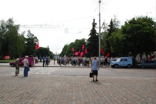 Сегодня 18 июля в 10.00 на Красной площади проходила забастовка под лозунгом « НЕТ – втягиванию Украины в НАТО!» Она была организована черниговскими социалистами и коммунистами. Под красными и розовыми флагами собралось около 70 человек на Аллее Героев, что напротив черниговской обладминистрации. Всем присутствующим раздали
