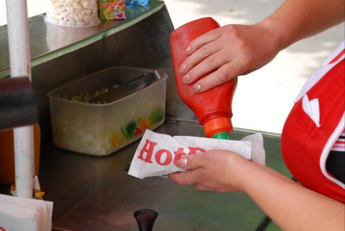 Лицам, старше 18 лет, не разрешается поливать хот-дог кетчупом;