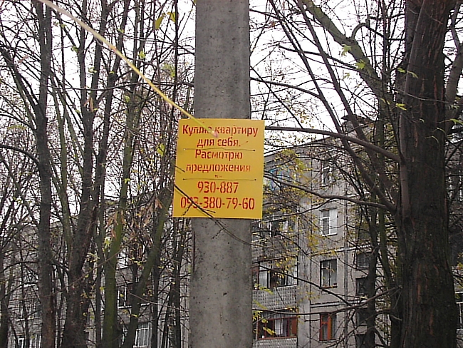 Недавно в Чернигове появилась интересная реклама на столбах. Одно из агентств недвижимости города почему то решило, что народ у нас очень глуп, и поверит в то, что обычный обыватель для того, чтобы купить квартиру для себя, будет размещать фанерные таблички на столбах! Интересно, а разрешение на размещение такого вида рекламы у них есть?