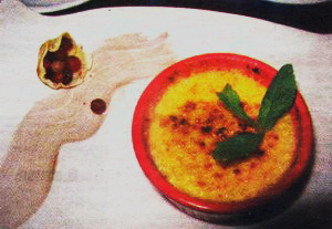 Себе выбираем «Застолье Арамиса» — запеченные куриные потроха с грибами — 47 гривен 20 копеек, на десерт крем-брюле — 25 гривен 70 копеек и чай — 14 гривен за порцию.
