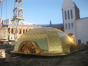 Отец Петр также добавил, что купол увенчает большой крест, высотой 2 метра 40 сантиметров, у подножья креста будет находиться шар диаметром 500 миллиметров.