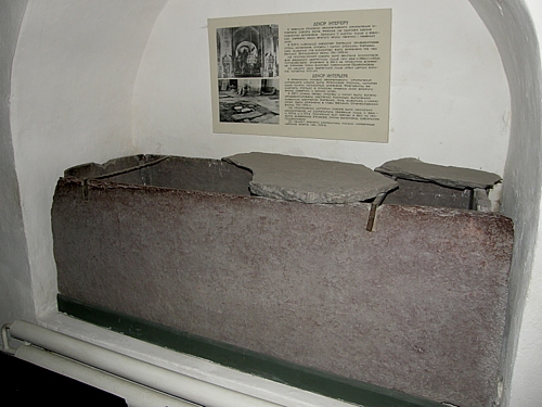 С противоположной стороны храма, в одной из северных ниш-аркасолий находится еще одна шиферная гробница, датирующаяся ХІІ столетием. Она была обнаружена в Успенском соборе Елецкого монастыря. Возможно, в ней был погребен один из героев «Слова о полку Игоревом» Всеволод Святославич – князь трубчевский, родной брат главного героя «Слова» Игоря Святославича. «Буй-тур» Всеволод, как называет его автор «Слова», в 1196 г., согласно летописи, был похоронен в Черниговской Богородицкой церкви – вероятно, в Успенском соборе монастыря.