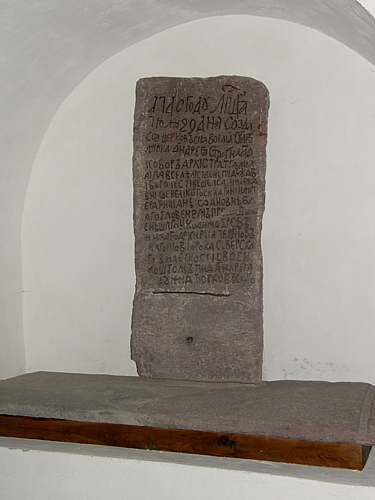 Естественно, что подобные шиферные гробницы или крышки от них находили не только в наше время, а и в предыдущие эпохи. Что же с ними тогда делали? Например, использовали в качестве информационных стендов! Так, например, в Борисоглебском соборе экспонируется шиферная плита, на которой в ХVIII столетии была вырезана надпись, краткое содержание которой сводится к тому, что 29 июля 1740 г. в селе Листвен (ныне с. Великий Листвен Городнянского района Черниговской обл.) архиепископом Черниговским и Новгород-Северским была освящена церковь Архистратига Михаила, возведенная на средства пана Андрея Дунина-Борковского. Видимо, эта плита в свое время в вертикальном положении была вкопана в землю и стояла перед церковью, напоминая прихожанам о дате возведения храма и меценатстве Дуниных-Борковских.