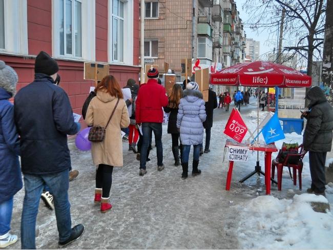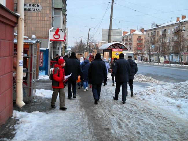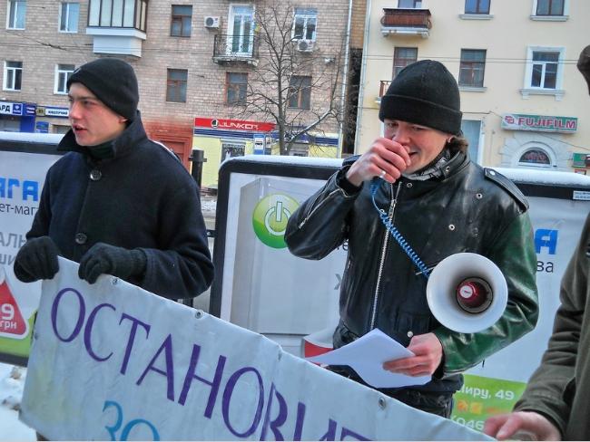 В субботу, 8-го декабря, примерно, в 14.30 собралась небольшая группа молодежи, участники которой строем двигались в сторону отеля «Украина». В руках у всех были плакаты и небольшие транспаранты.