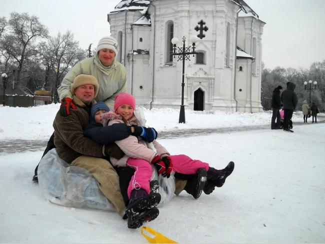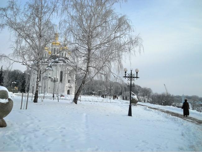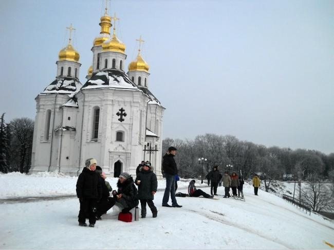 Сюда ходим постоянно – это наш «Буковель». Екатерининская церковь  – одно из самых красивых мест Чернигова. Сегодня здесь вообще, красота. 100 % по классику – «Мороз и солнце – день чудесный».