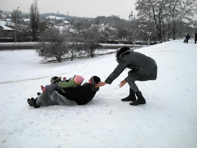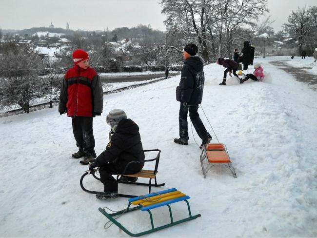На горке возле Екатерининки катаются даже народные депутаты (фото)