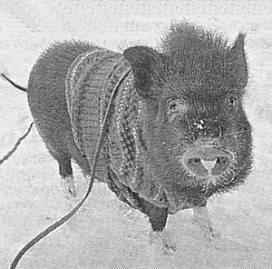 Откуда такая экзотика? Познакомившись, узнала, что хозяйка ученой свинки клоун-дрессировщица Оксана Николаева после 18 лет работы в Киевском цирке ушла на пенсию, и сейчас обучает цирковому мастерству вьетнамского мини-пига по имени Фантик. Он продолжает цирковую династию своих родителей и, возможно, после Нового года вернется в Киевский цирк на постоянную работу. Недавно ему исполнилось полгода. Оксана, уходя из цирка, поставила номер для своего мужа, также клоуна-дрессировщика, и он продолжает выступать с поросятами и собаками.