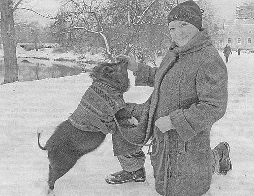 - Я в свое время работала и с медведями, и с борзыми, и с фокстерьерами, но, поверьте, свинки - умнее и преданнее всех. Сейчас, когда ухожу на процедуру диализа на 6 часов, он ждет меня, а возвращаюсь - видели бы вы, какая это радость для него!