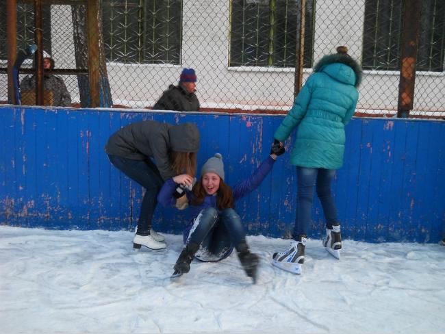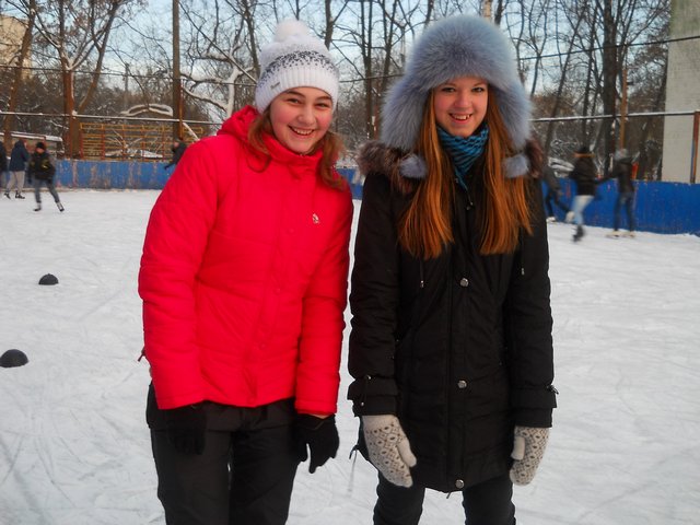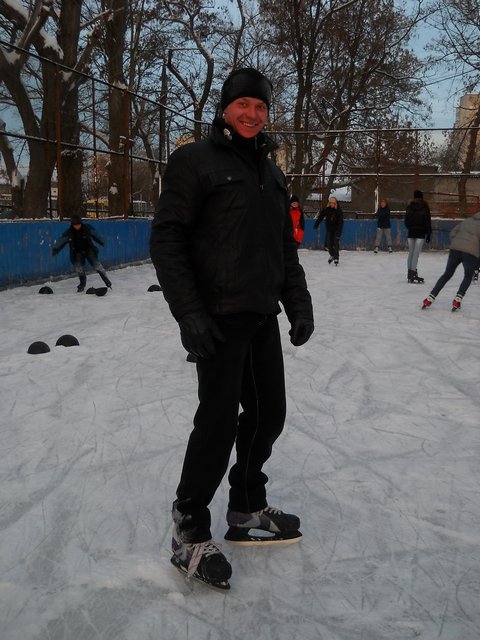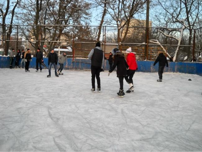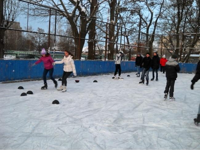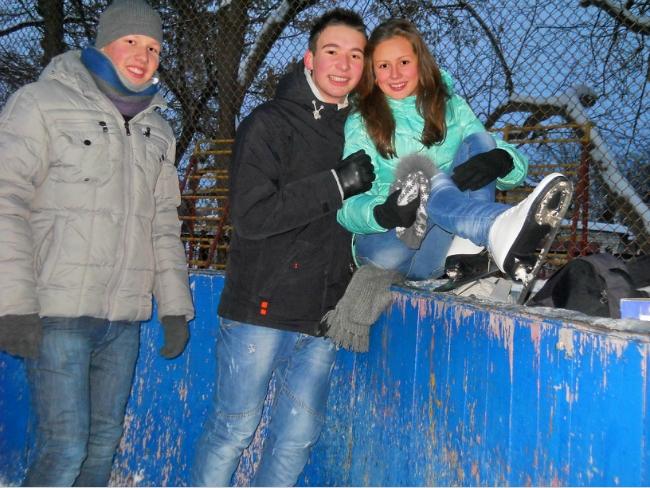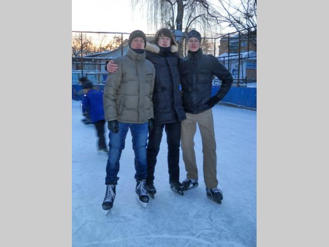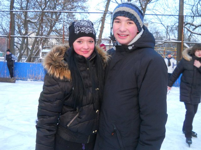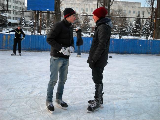 Мы вчера опробовали лёд в горсаду, а сегодня пришли сюда. Живём на Кругу и на Рокоссовского. Коньки у нас свои, 5 грн. за вход – не деньги.