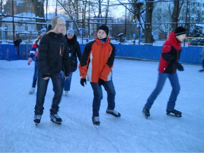 Мы сегодня на катке уже второй раз. Живём рядом и возможности лишний раз выйти покататься не упускаем. На лыжи не ходим – дорого. А здесь мы вообще не платим. Летом тоже катаемся, на роликах и скейтах.